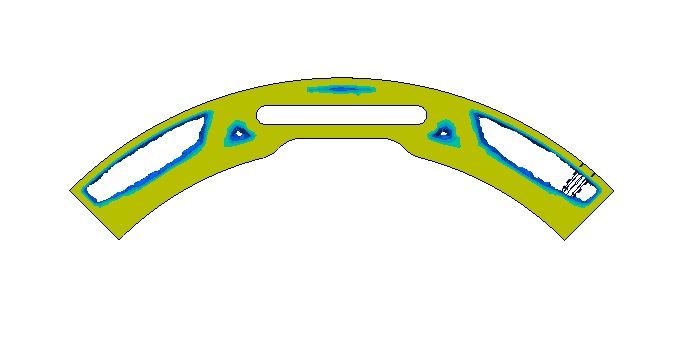 After a couple iterations, the results showed that the maximum stress was considerably smaller then the yield stress of the material. Thus a lot of material could be removed, leading us to going from an initial mass before optimization of 210 g (for the initial basic design) to 120 g for design #1 and to 130g for design #2.