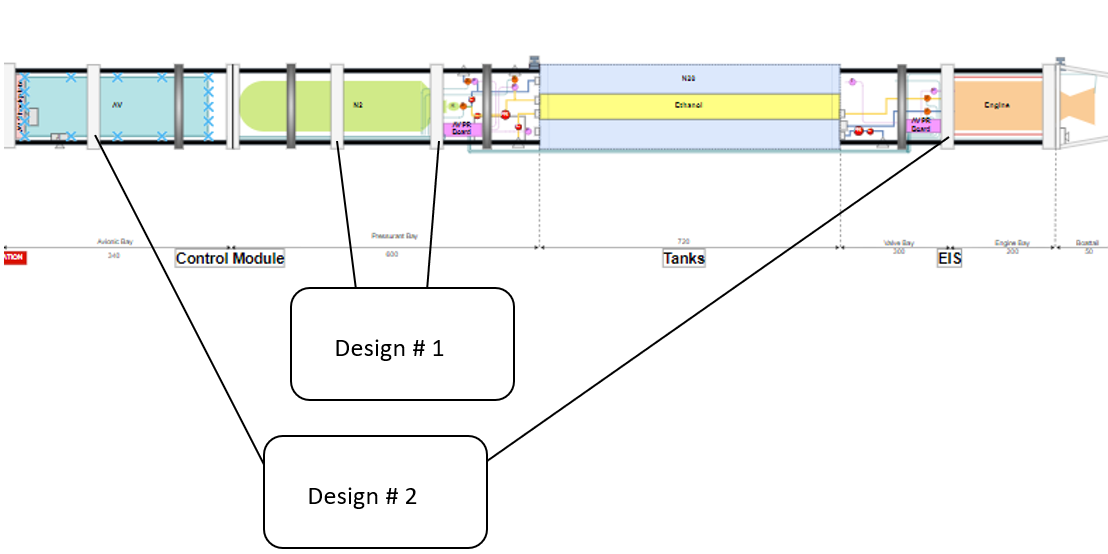 Depending on the arrangement of panels and taking into consideration the modular 3d printed rings, the AB rings were placed strategically along the rocket as shown below :